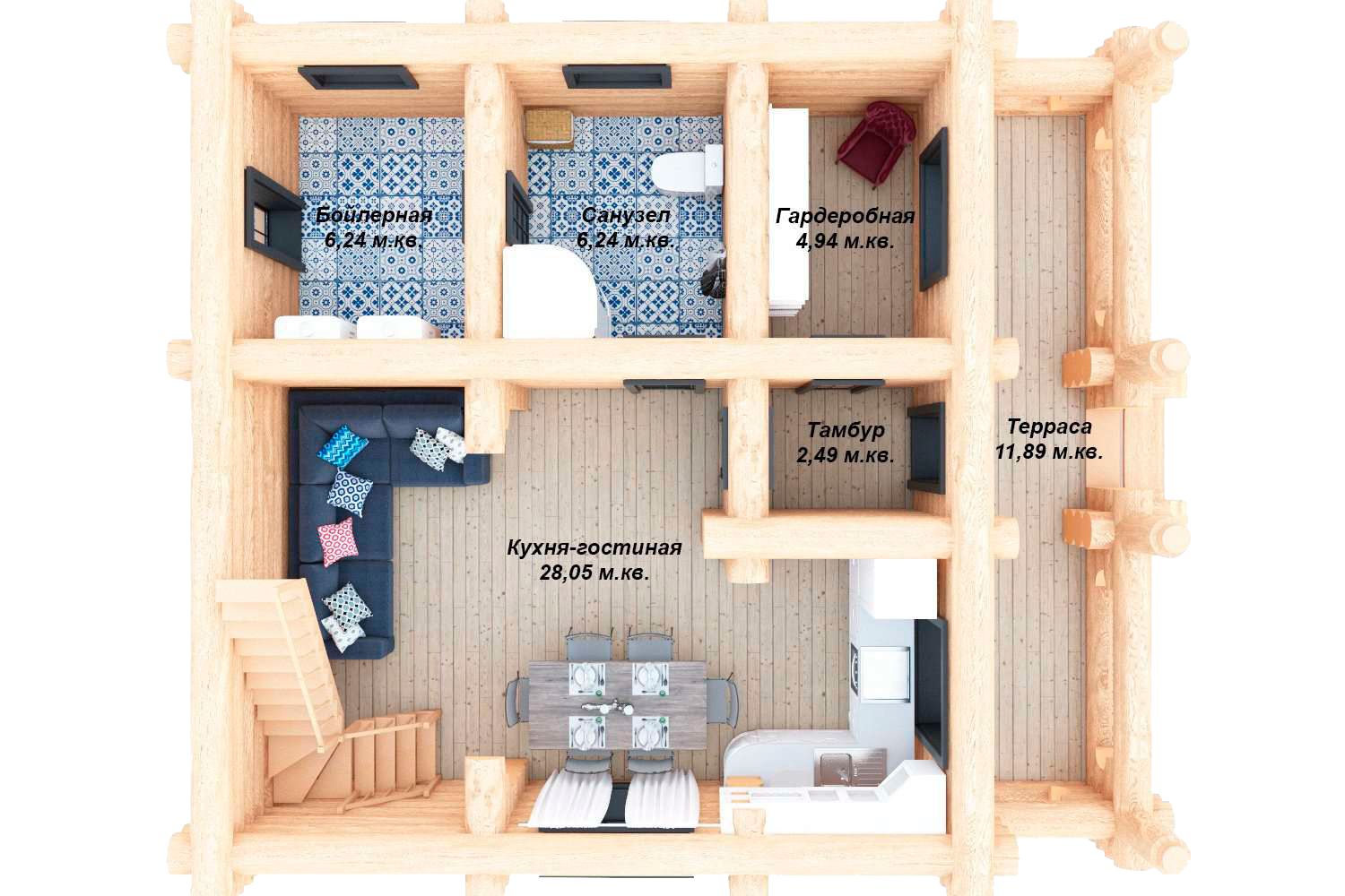 Посмотрите каталог проектов домов из бруса и выберите дом под свои параметры